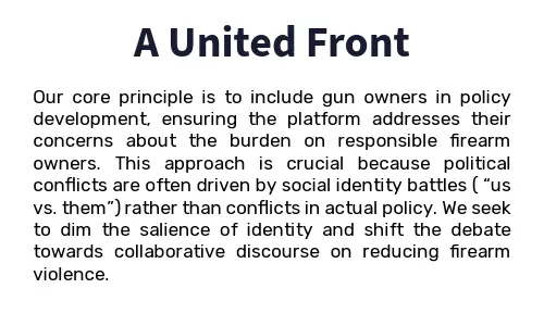- Gaining the support and investment of the gun-owning community is necessary and can lead to a more inclusive and effective policy.